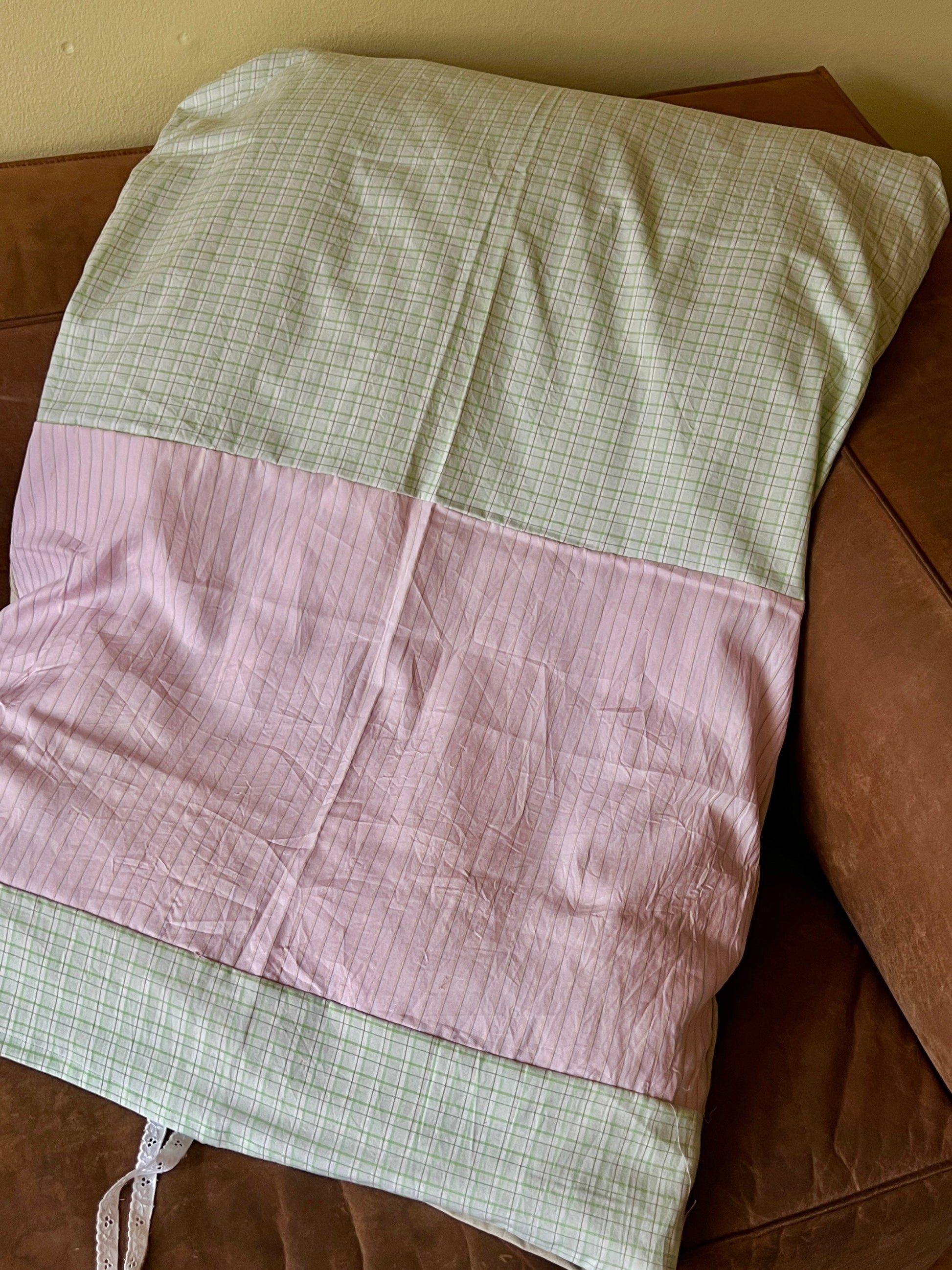 BOBSEN dynebetræk er et baby dynebetræk syet af nøje udvalgte vintage tekstiler og findes kun i ét eksemplar. Det lykkes med bindebånd. Hvert sæt er sammensat i hånden med respekt for materialernes historie og med fokus på ro, taktilitet og æstetik i børneværelset. Bagsiden er ét stykke bomuld i tilpasset farve.
