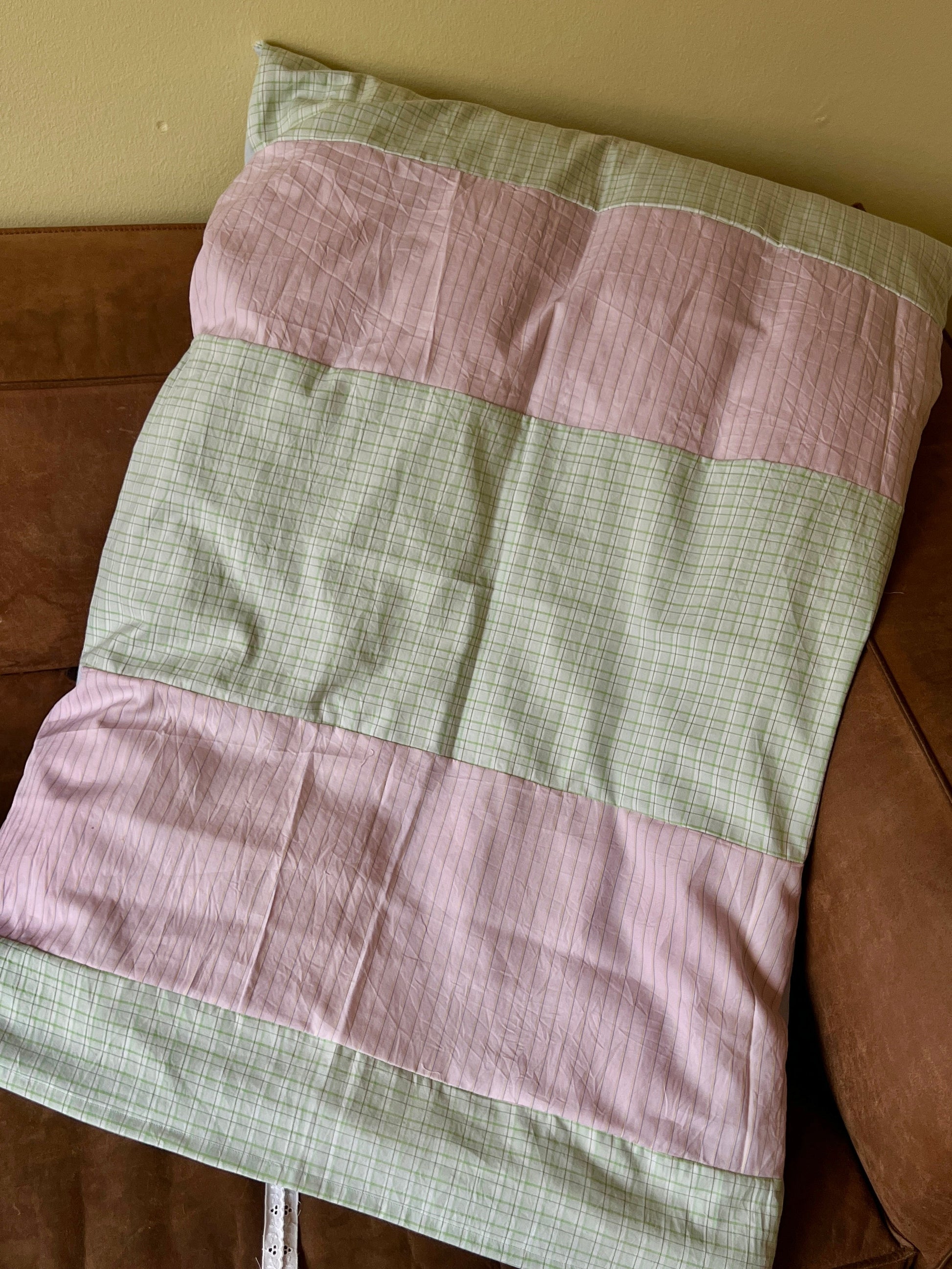 BOBSEN dynebetræk er et baby dynebetræk syet af nøje udvalgte vintage tekstiler og findes kun i ét eksemplar. Det lykkes med bindebånd. Hvert sæt er sammensat i hånden med respekt for materialernes historie og med fokus på ro, taktilitet og æstetik i børneværelset. Bagsiden er ét stykke bomuld i tilpasset farve.