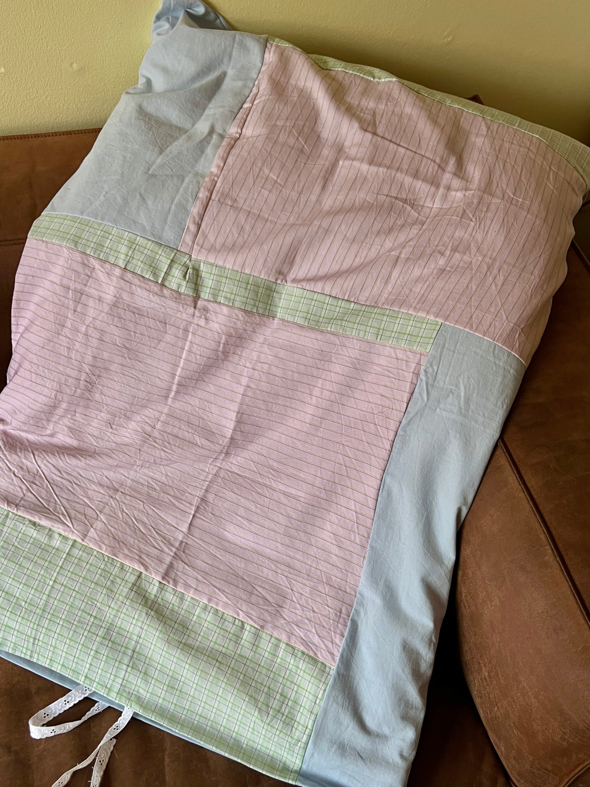 BOBSEN dynebetræk er et baby dynebetræk syet af nøje udvalgte vintage tekstiler og findes kun i ét eksemplar. Det lykkes med bindebånd. Hvert sæt er sammensat i hånden med respekt for materialernes historie og med fokus på ro, taktilitet og æstetik i børneværelset. Bagsiden er ét stykke bomuld i tilpasset farve.
