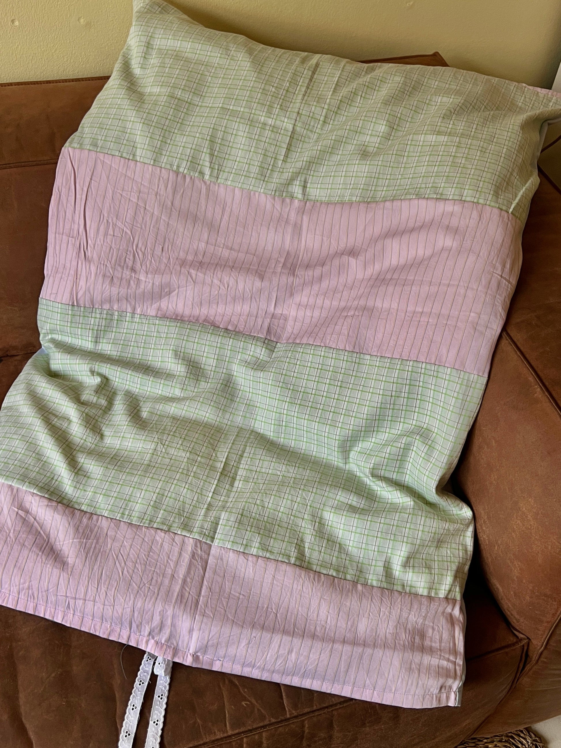 BOBSEN dynebetræk er et baby dynebetræk syet af nøje udvalgte vintage tekstiler og findes kun i ét eksemplar. Det lykkes med bindebånd. Hvert sæt er sammensat i hånden med respekt for materialernes historie og med fokus på ro, taktilitet og æstetik i børneværelset. Bagsiden er ét stykke bomuld i tilpasset farve.