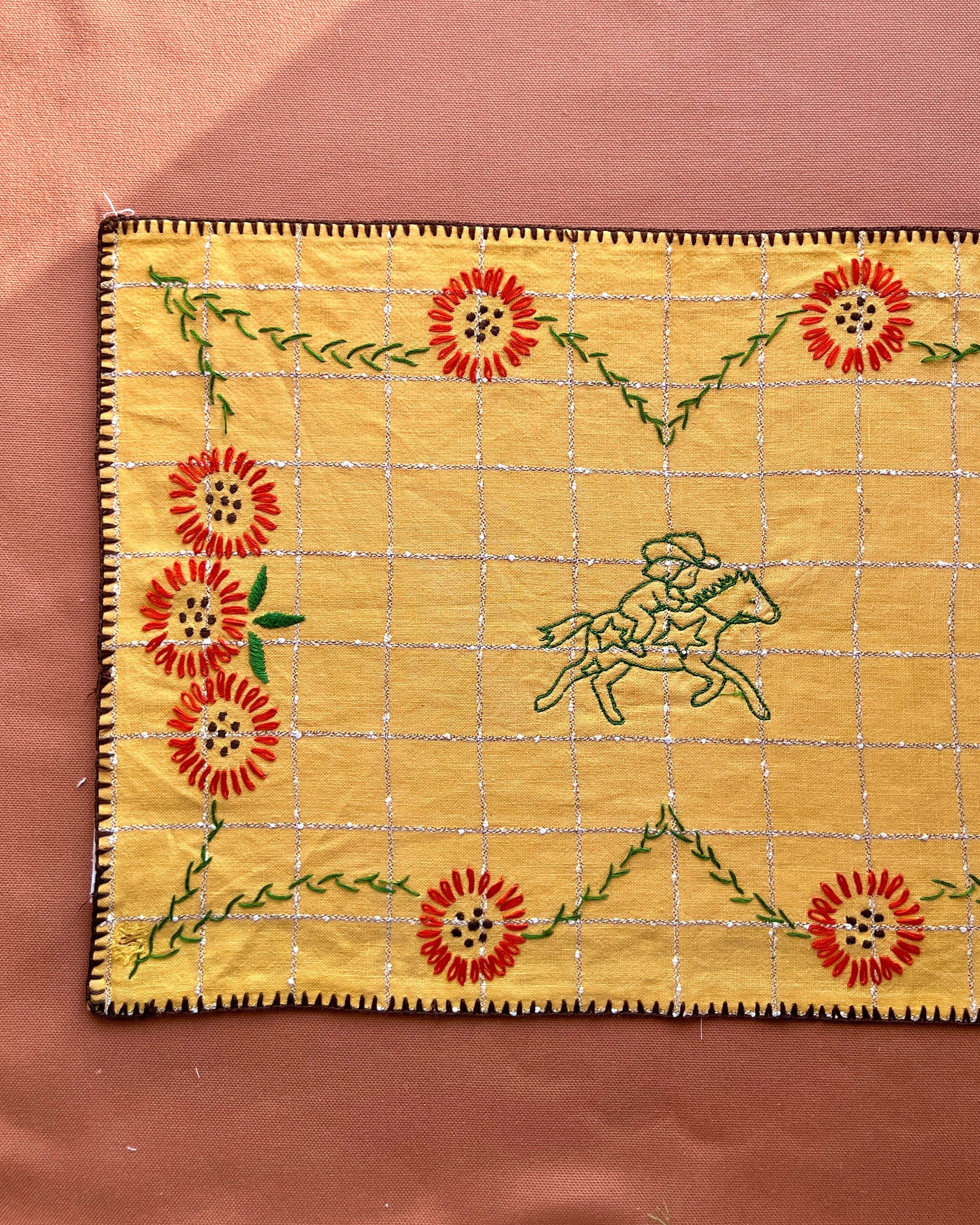 Obs. Dette er et vintage tekstil og kan derfor vise spor af tidligere brug, alder og patina. Mindre uregelmæssigheder, farvevariationer eller tegn på slid er en naturlig del af tekstilets historie og betragtes ikke som fejl, men som en del af dets karakter.