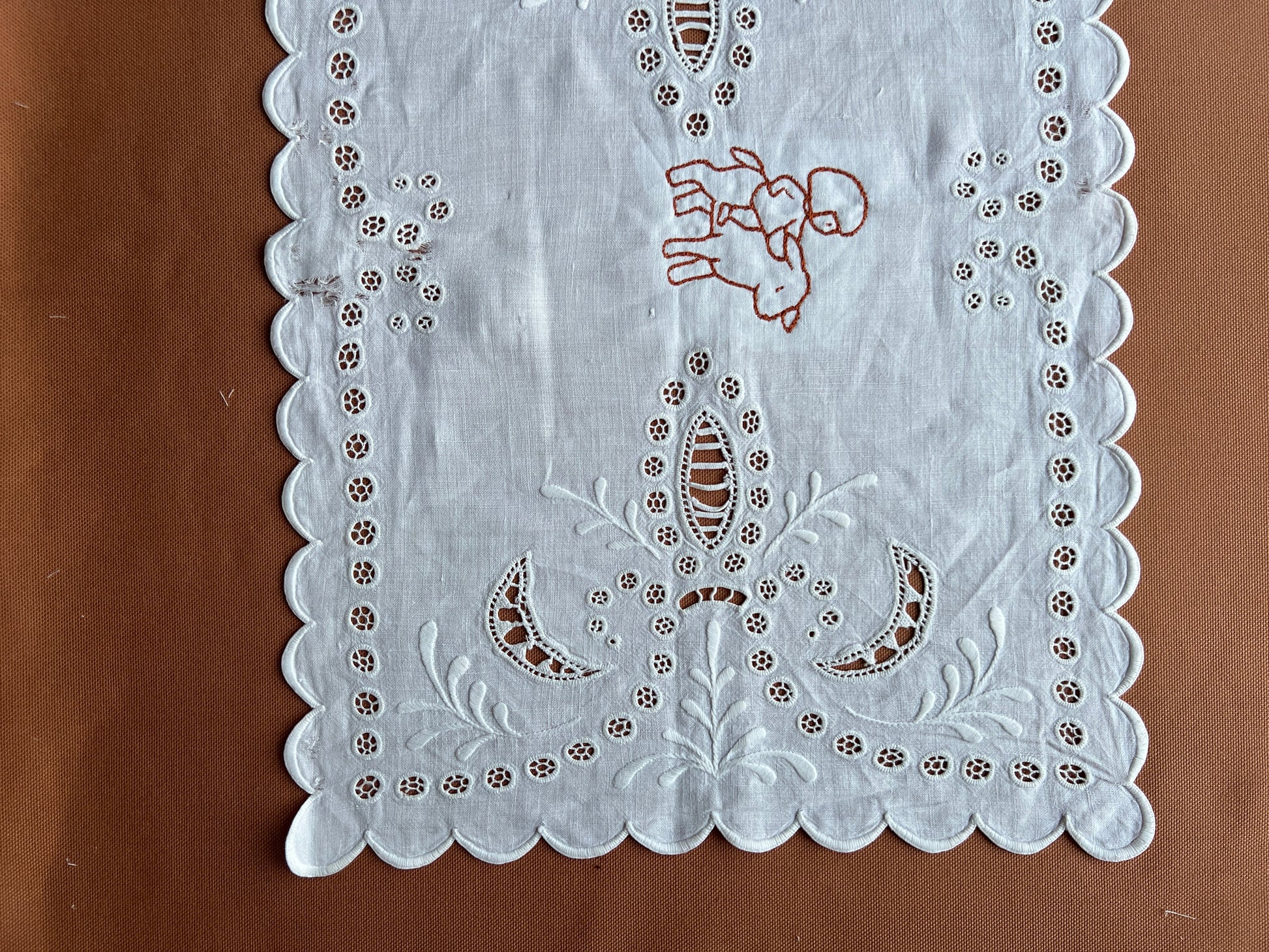 Obs. Dette er et vintage tekstil og kan derfor vise spor af tidligere brug, alder og patina. Mindre uregelmæssigheder, farvevariationer eller tegn på slid er en naturlig del af tekstilets historie og betragtes ikke som fejl, men som en del af dets karakter.