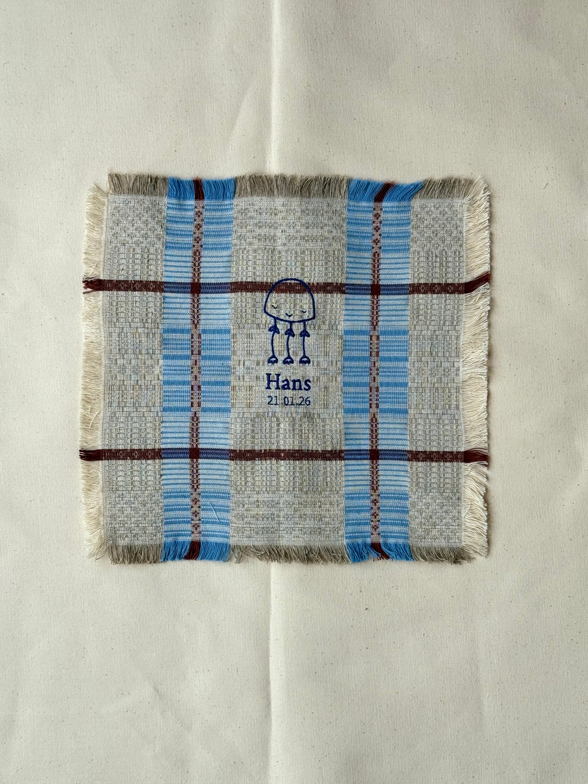 Nøje udvalgte vintage tekstiler med broderede motiver. Hvert stykke findes kun i ét eksemplar og broderes specifikt til den person, det er tiltænkt ved at tilføje broderet navn, dato eller anden tekst