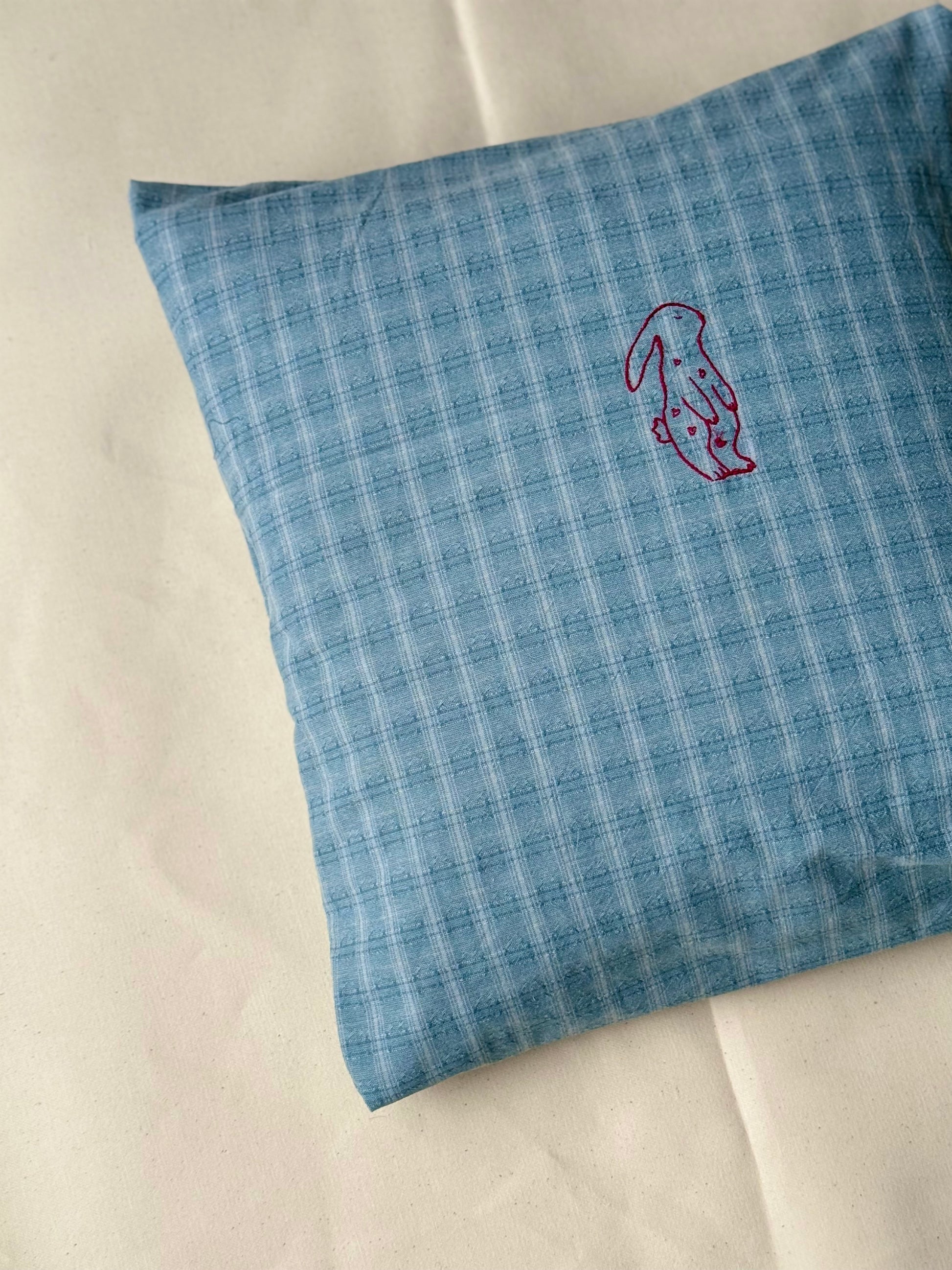 Pudebetrækket kan købes uden pude eller sammen med en monteringspude i økologisk bomuld, fyldt med andefjer, som giver god fylde og holder formen over tid.