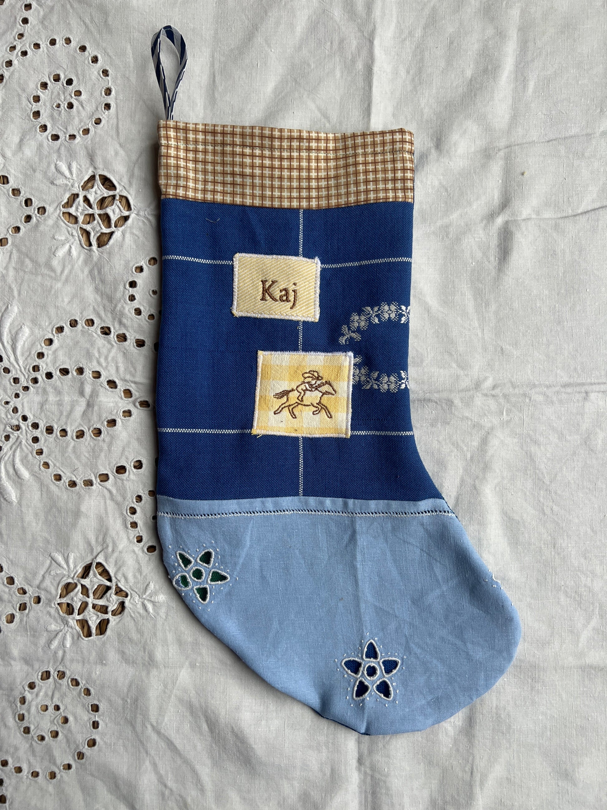 Made to order julesok i vintage tekstil - tilføj navn og motiv