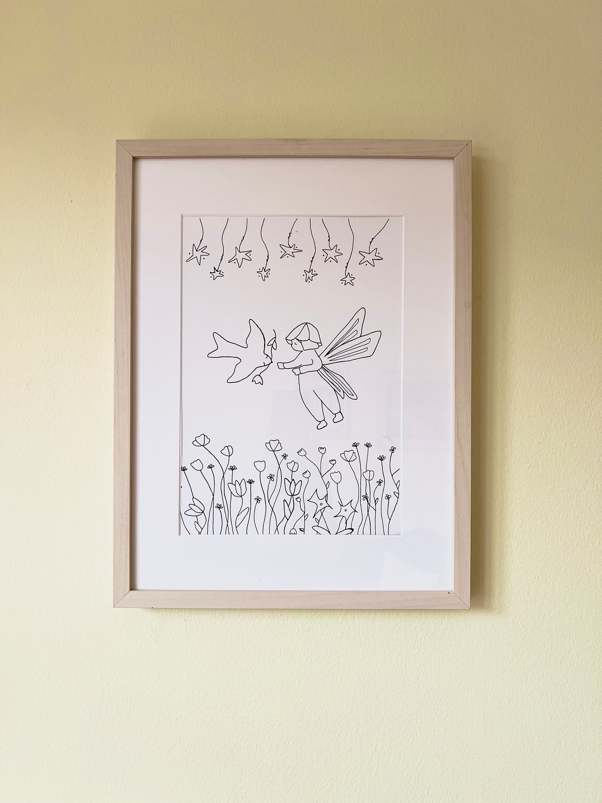 Trykket er produceret på 275 g tydeligt struktureret papir i en let knækket hvid tone. Papiret er ikke glat, men har en synlig og mærkbar overflade, der ligger tæt op ad det originale tegnepapir og understøtter det analoge udgangspunkt uden at tilføje nye visuelle elementer.