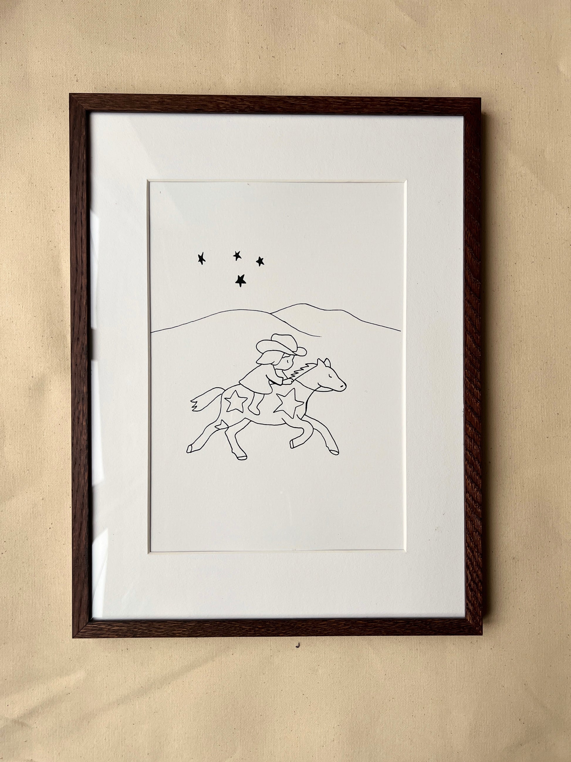 Håndtegnet stregtegning, efterfølgende professionelt scannet og trykt.